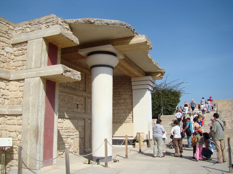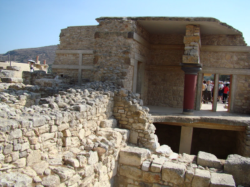 Cung điện cổ xưa Knossos được bắt đầu xây cất khoảng 4,700 năm trước. Có khoảng 1,300 phòng nối liền bởi nhiều hành lang. Rộng khoảng 6 mầu, bao gồm một nhà hát (theater), 4 cửa vào chánh cho 4 phía, và nhiều nhà kho chứa dầu olive, cá khô, đậu v..v.. Theo những vết tích tìm được tại vùng Knossos nầy, các nhà khảo cổ nhận thấy ở xã hội Minoan ngày xưa đàn bà được trọng vọng, và là một xã hội không chú trọng đến quân sự (non militaristic society).