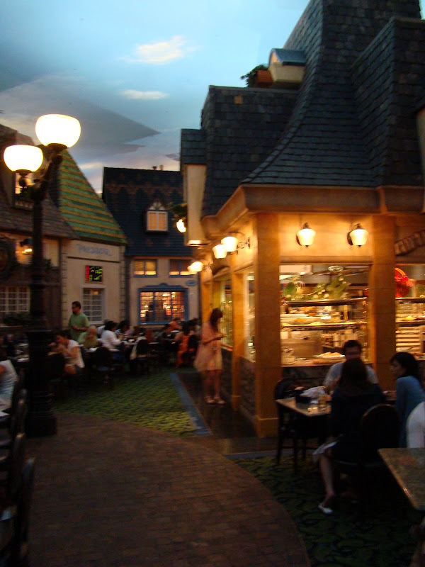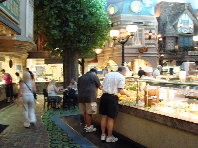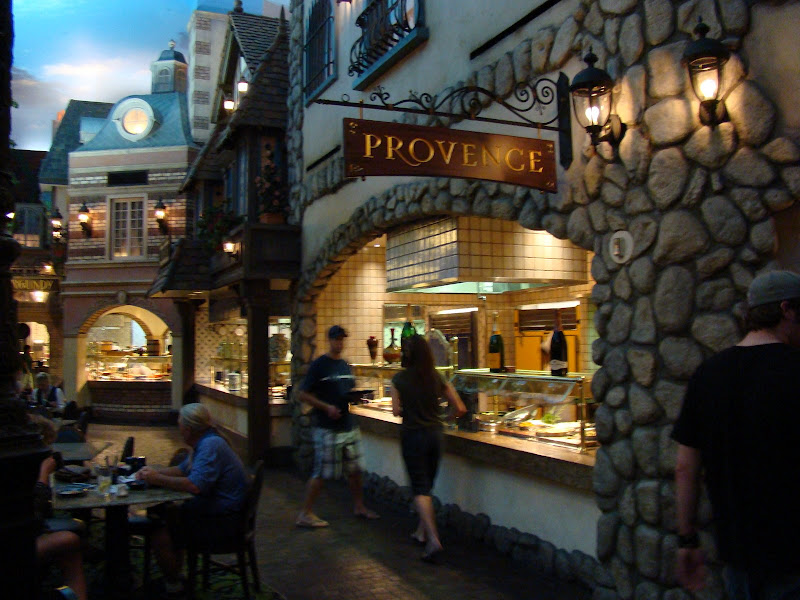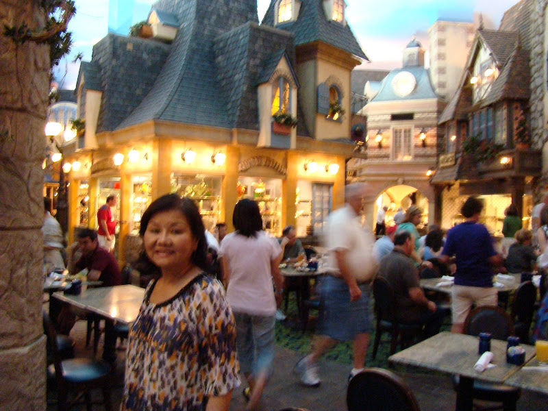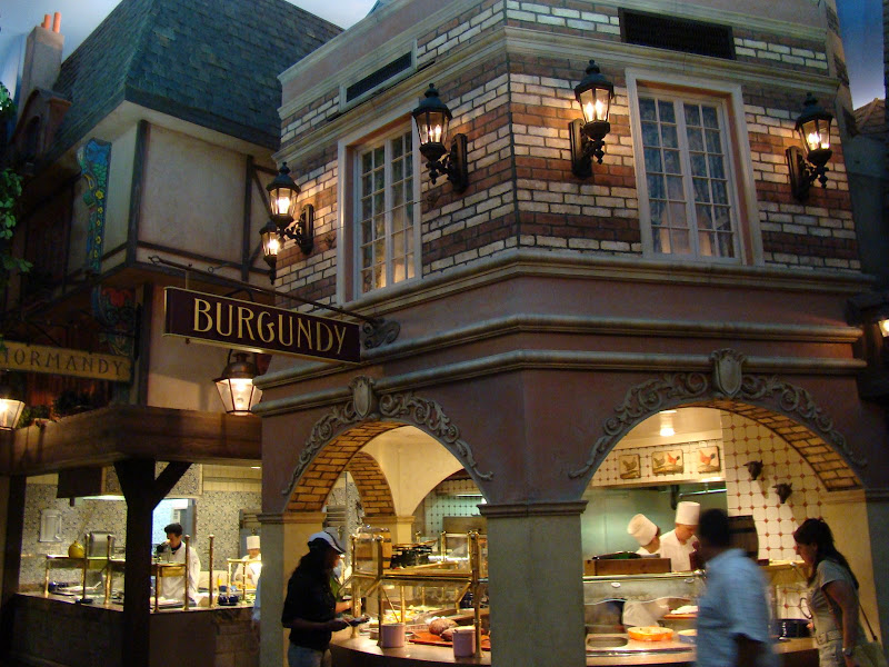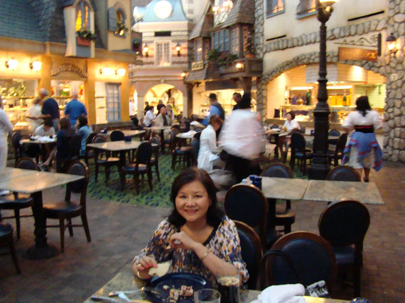 Cơm Tây ở đây ngon lắm. Hai vợ chồng tôi đi ăn ở tiệm “All you can eat” (ăn bao bụng) ở một tiệm cơm trong resort. Quán có nhiều dãy nhà, mỗi nhà có kiến trúc nhái lại nhà cửa của một vùng bên Pháp. Mỗi căn nhà của một vùng có bày nhiều món ăn nấu theo lối vùng đó, tha hồ lựa chọn.
