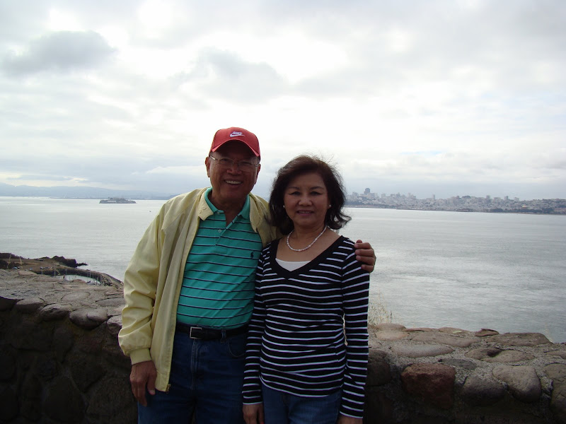 Thành phố San Francisco bên kia Vịnh sau lưng vợ chồng tôi, nhìn từ Vista Point