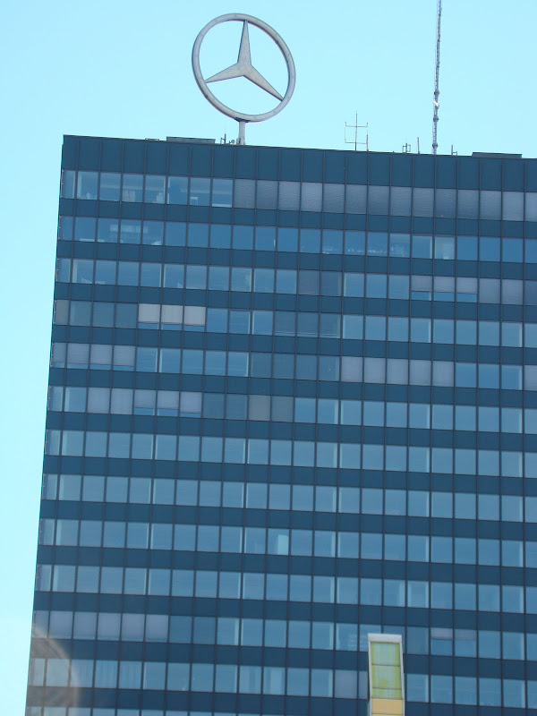 Cao ốc trụ sở xe Mercedes, chụp từ Nhà thờ Tưởng niệm Hoàng đế Wilhelm.