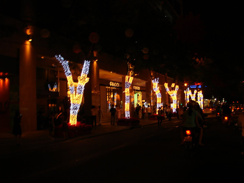 Rất tiếc máy của tôi xấu quá, không chụp được hết nét đẹp lung linh huyền ảo của Saigon ban đêm những ngày đón Giáng Sinh. Có lẽ cuối năm nay, tôi sẽ hướng dẫn một vài con cháu về ăn Giáng Sinh ở Saigon trở lại. (Sẽ bổ túc sau).