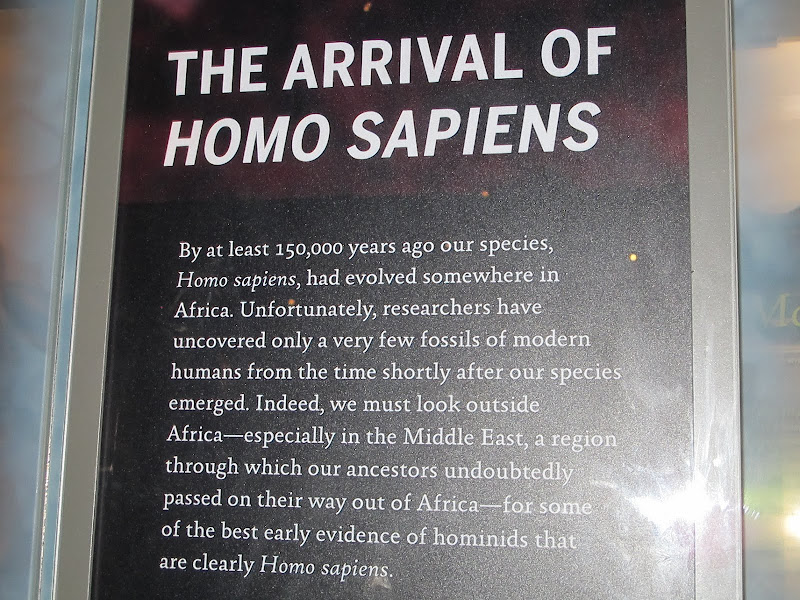 Trong entry nầy, xin chia sẻ với các bạn một vài hinh ảnh chụp được ở một trong 46 phòng triển lãm, nói về nguồn gốc con người, và sự tiến triển từ người tiền sử đến con người thông minh homo sapiens ngày nay. (Sẽ bổ túc sau).