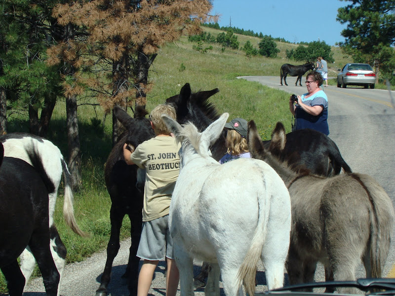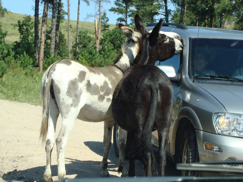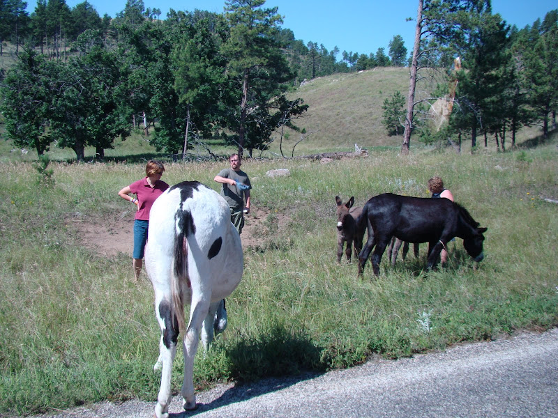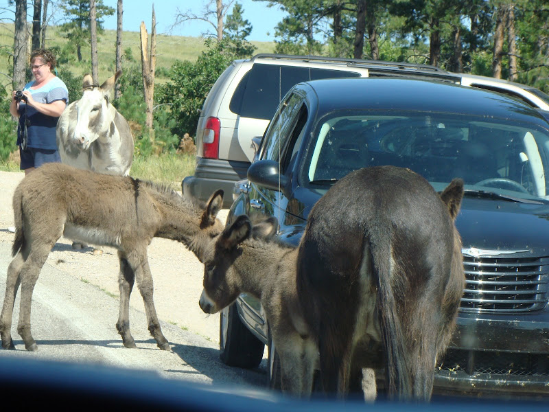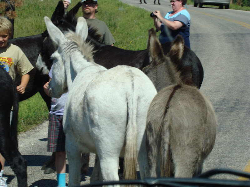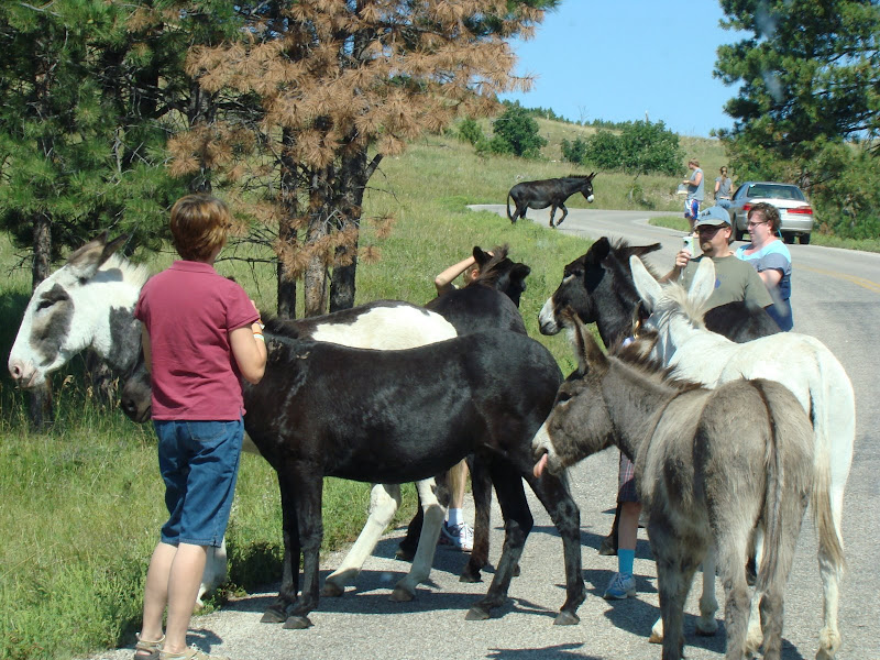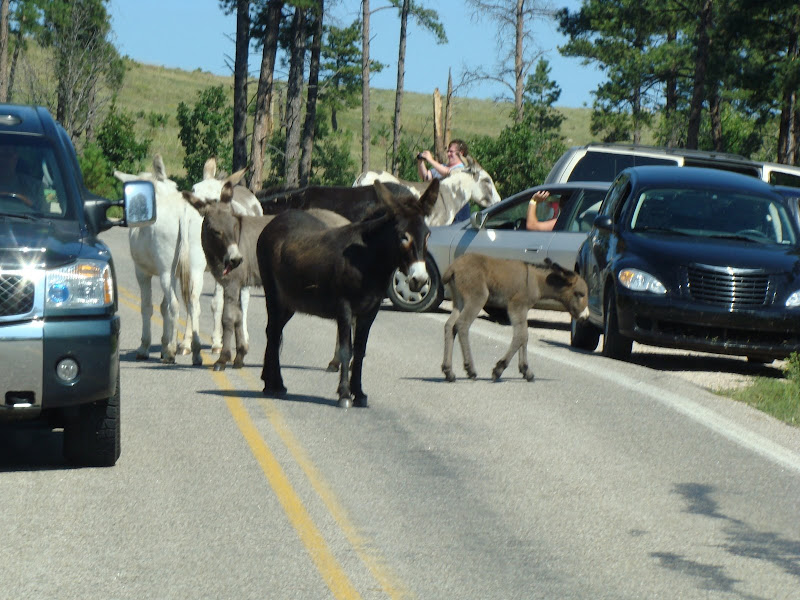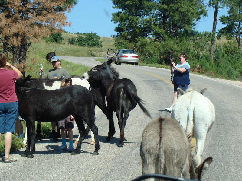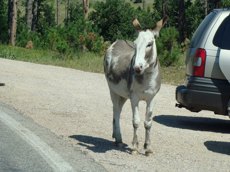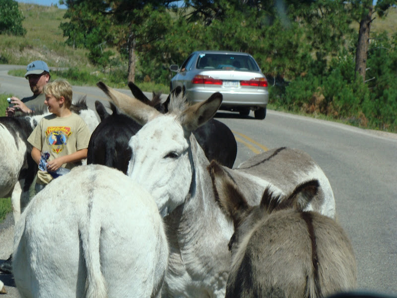 Trong entry nầy, xin chia sẻ với các bạn một vài hình ảnh con đường nhỏ đặc biệt này. Trên đường đi đến núi Rushmore, đoàn du khách chúng tôi phải dừng xe lại chờ đám lừa đi qua đường xong mới đi được. Theo luật thú vật có quyền ưu tiên qua đường.