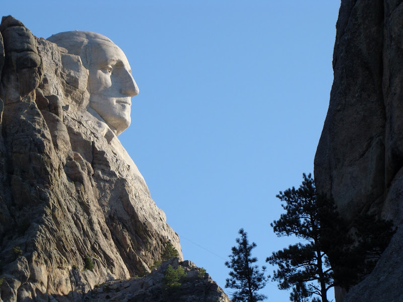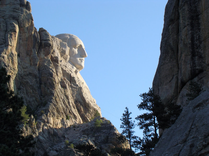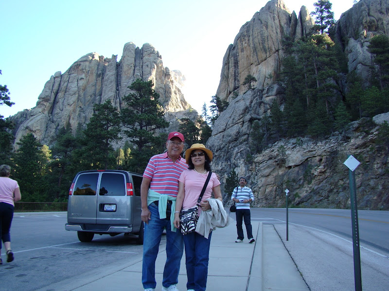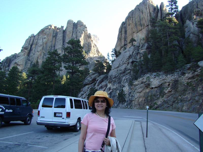 (Trên đường vô công viên Custer, có một chỗ du khách thường dừng xe lại chụp hình. Đó là tượng Tổng Thống Washington nhìn nghiêng của Núi Rushmore xa xa, rất đặc biệt.)