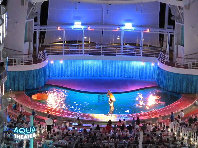 Quang cảnh rạp hát ngoài trời Aqua Theater. Rạp hát này có một hồ bơi sâu nhất thế giới trên tàu cruise, sâu gần 6 thước. Do đó chương trình văn nghệ ở đây rất đặc sắc, không tàu cruise nào làm được. Diễn viên có thể biểu diễn những màn nhảy từ trên cao xuống hồ bơi rất ngoạn mục, và nguy hiểm.