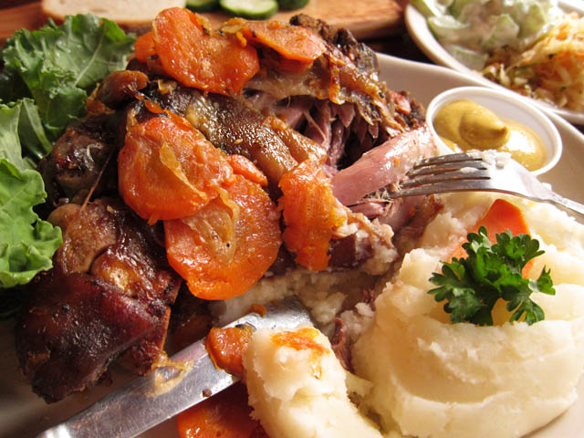 Món chánh là thịt heo nướng với khoai tây chiên và rau cải, thịt được nướng theo kiểu thuần túy Ba Lan. Ăn lạ và ngon, nhưng thú thật không bằng cơm canh chua cá kho tộ của Việt Nam mình đâu.