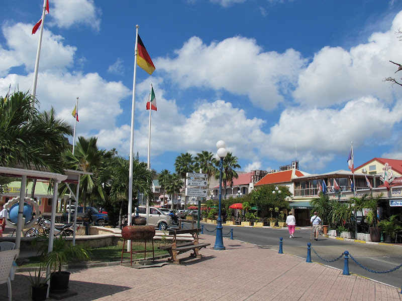 Thành phố hải cảng Philipsburg thuộc Hà Lan rất dễ thương, nhiều tiệm tùng mua sắm, bãi biển cát trắng nước biển trong xanh rất đẹp. Thành phố Marigot thuộc Pháp hoàn toàn khác, có nhiều quán ăn, nhiều nhà cửa giống như bên Pháp lúc vợ chồng tôi thăm viếng bên đó. Phía bên Pháp gọi đảo này là St Martin.