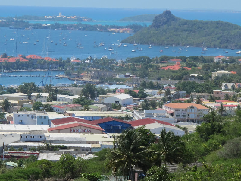Pháo đài St Louis xa xa nhìn xuống Vịnh và thủ đô Marigot