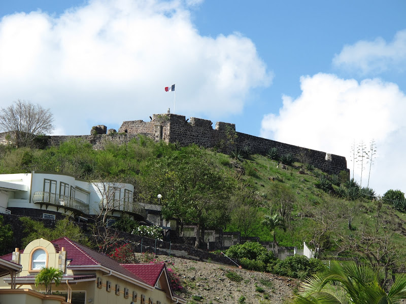Dưới đây tôi cũng post hình của pháo đài phòng thủ St Louis vẫn còn tồn tại đến ngày nay, ở xa xa trên đồi ngó xuống thành phố Marigot.