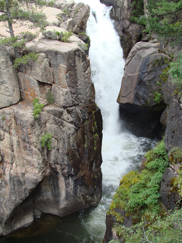 “Shell Falls is a waterfall in the Bighorn National Forest on Shell Creek, about half-way down Shell Canyon, and a few miles upstream from the town of Shell in northeast Wyoming. The falls are 120 feet (36 meters) in height and tumble over basement rock of granite.