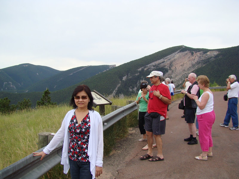 Chổ tôi đứng chụp hình được gọi là “The Buffalo Tongue”, giống hình lưỡi con bò rừng, tên do người da đỏ ngày xưa đặt. Chính tại ngọn núi Tongue này phát sanh dòng suối, biến thành sông quan trọng chảy từ Wyoming sang Montana, đó là sông Tongue (Lưỡi).