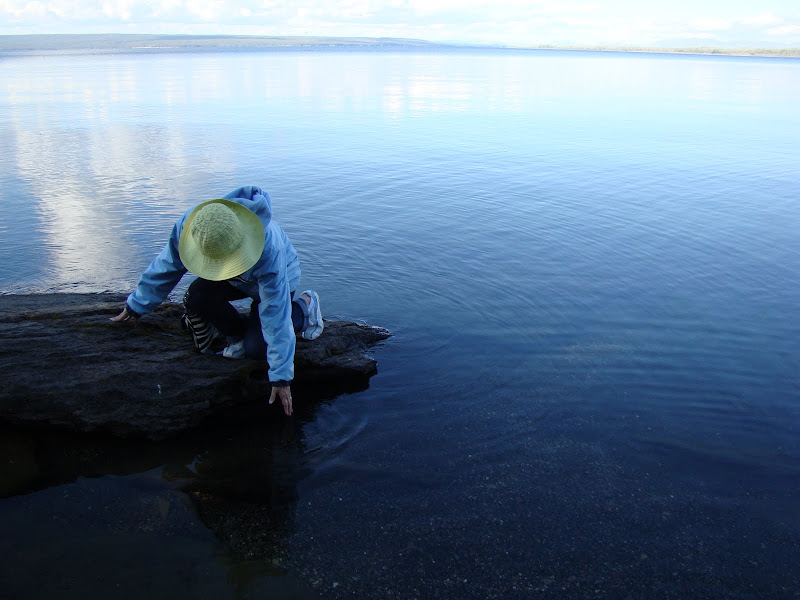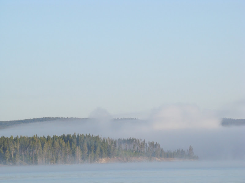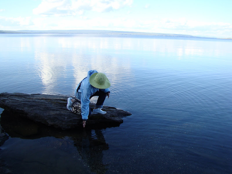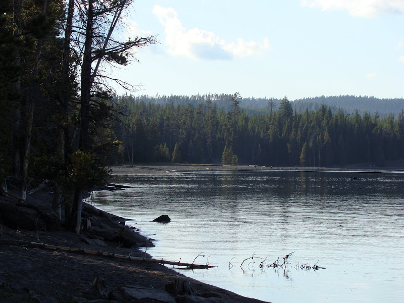 Vùng hồ tên là West Thumb nơi chúng tôi đến ngủ qua đêm vẫn còn địa nhiệt, ở sâu dưới hồ còn nóng, và một vài nơi còn xuất hiện geyser (mạch nước phun), fumarole (mạch phun khói) và đặc biệt hot spring (suối nước nóng).